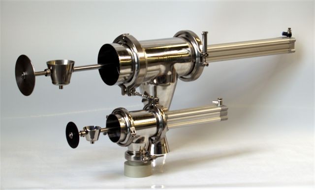The sample is collected in a cup and so is not physically altered by the sampling process. When the sampling cup is retracted the full bore of the down pipe is available for powder flow. Made from FDA acceptable materials and easy to strip down for cleaning